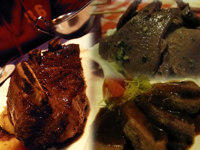 在幽暗的燈光下落座,餐前小吃我一般會選擇它的農夫牛舌,薄薄地8片牛舌,在橄欖油和生菜的襯托下顯得清淡卻有特色,最吸引人的還是價錢,只8元(人民幣,下同),非常實惠,必點!。不妨再來份香醇濃郁、味美色雅的保健南瓜湯(10元),再試試口味清新的蔬菜沙律,如田園沙律(20元)等, 如果你要的是地道正宗的阿根廷口味,還可以讓師傅只上清一色的果蔬,然後你再根據個人口味添加紅酒醋、橄欖油和檸檬汁。阿根廷小吃–酥皮餃也是極富異域 特色的,火腿芝士或牛肉與特製香料的搭配,味道獨特,讓人難忘。